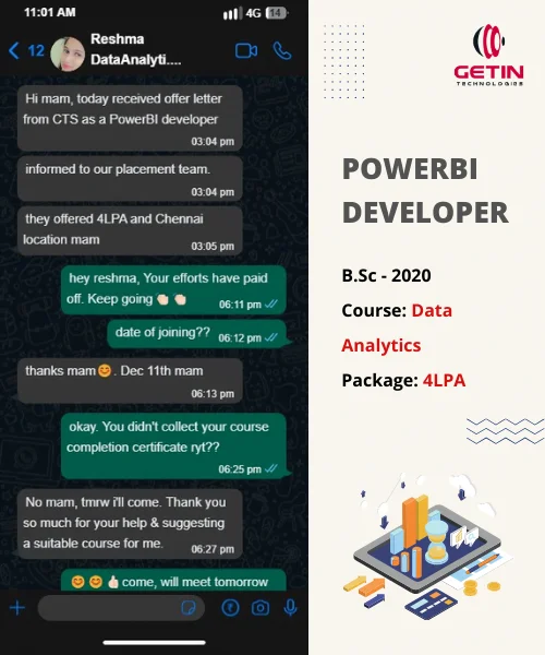 Studying Data Analytics at Getin Technologies, an IT Training institute, helped me explore real data, build strong insights, and grow professionally with supportive trainers and hands-on exposure throughout the course